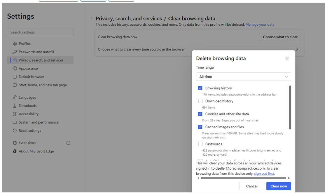 Please view the short clip for steps to clear cache in Microsoft Edge.