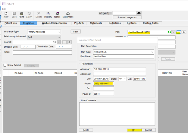 “This plan is currently available in our master plan list. Please search by the address 1 field only, with the numeric portion (ex. 61010). Our latest release gives users with Account Manager Privileges access to Insurances Settings to edit/update the practice account insurance list. Please refer to the Knowledge Base article link below for instructions to maintain the list for insurance name, address, payer id, or insurance type changes.”